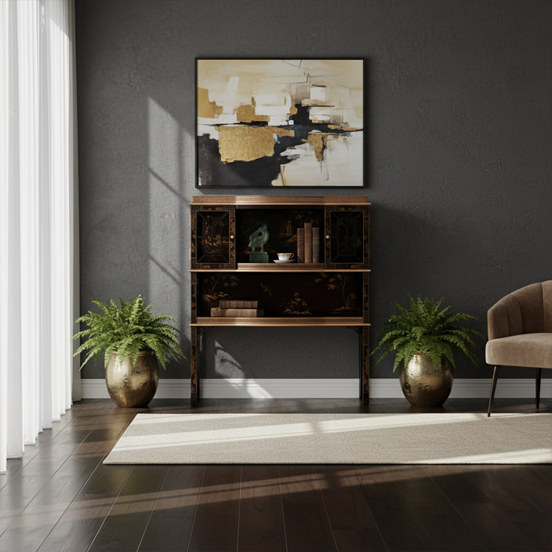 In terms of application, the EKAR Dynasty Chinoiserie Console is specifically curated for grand foyers, formal reception halls, and upscale master suite galleries. Its unique profile and opulent black-and-gold palette allow it to harmonize with a variety of décor themes, from strictly traditional British manors to more contemporary, high-concept penthouses that require a touch of historical gravity. It pairs naturally with marble floors, silk window treatments, and ornate crystal lighting to create a fully immersive luxury environment that reflects a refined taste for global excellence. Choosing a piece from our Foshan customized furniture factory is an investment in a global legacy of success. This console promises to deliver a visual legacy of elegance and a functional masterpiece that remains a global standard for luxury export furniture across the world.