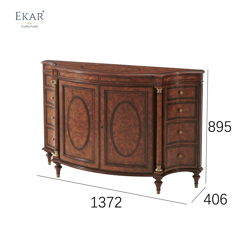 The EKAR Marlborough Heritage Sideboard is a monumental statement piece designed to anchor the most prestigious entryways and hallways. As a hallmark creation from EKAR FURNITURE, a premier mid-to-high-end furniture customization factory, this cabinet embodies the architectural poise and historical dignity of classical British design. The silhouette is defined by its sophisticated "bow-front" facade, a rhythmic curve that breaks the visual monotony of standard linear spaces. This isn't just a functional storage unit; it is a structural masterpiece for your home, reflecting the superior woodworking expertise and aesthetic depth that only a top-tier Foshan furniture factory can provide to the international luxury market.