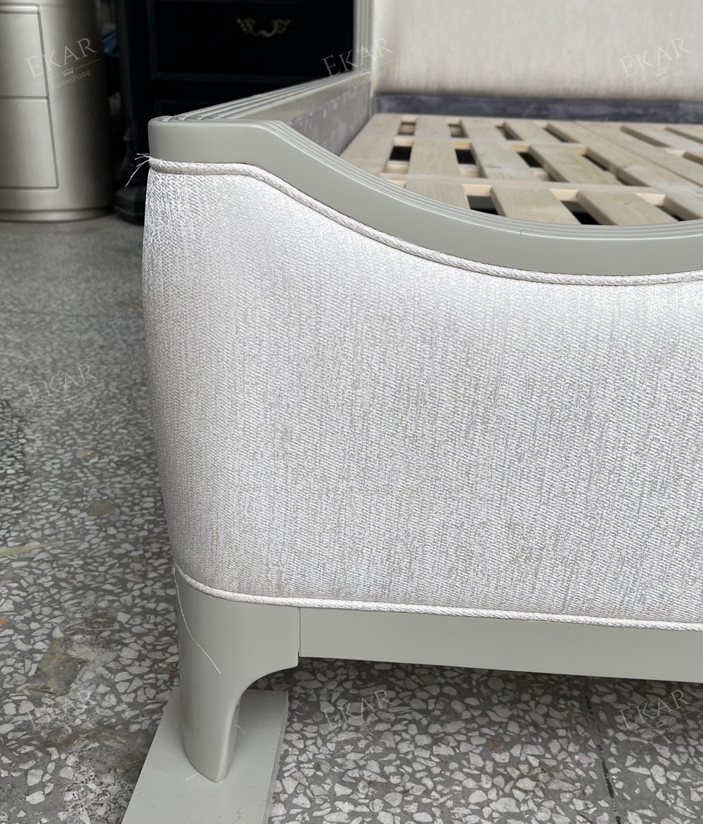 Crafted from high-quality solid wood, the Serene Luxe Bed features a sturdy frame with graceful, curved lines that soften the room’s aesthetic, paired with a generously padded upholstered headboard that adds both comfort and sophistication. The wood’s natural grain shines through a smooth, durable finish, while the upholstery – available in a range of premium fabrics – introduces texture and warmth. The customizable design allows for adjustments in wood type (from oak to walnut), upholstery fabric, headboard height, and frame dimensions, ensuring it seamlessly integrates into diverse bedroom styles, whether your space leans toward modern luxury, classic elegance, or soft contemporary.