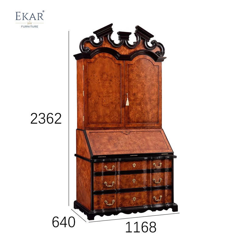 EKAR Sovereign Manor Luxury Secretary Bureau | English Style Burl Wood Desk Cabinet |