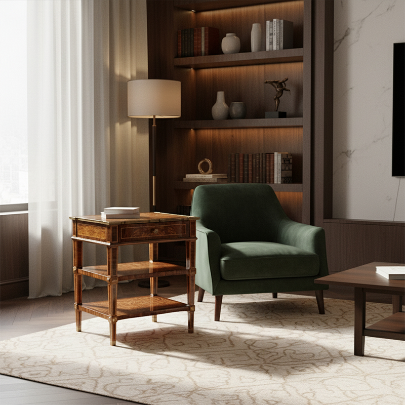 In terms of application, the EKAR St. James Royal Heritage is specifically curated for grand foyers, formal parlors, and upscale residential libraries. Its unique profile allows it to function as a magnificent welcome piece in an entryway or as a prestigious side companion to high-backed velvet-upholstered sofas. It pairs naturally with high-gloss mahogany tables, leather-upholstered seating, and ornate crystal lighting to create a fully immersive luxury environment that reflects a refined taste for global excellence. Choosing a piece from our Foshan export furniture factory is an investment in a global legacy of success and professional poise. This end table promises to deliver a visual legacy of elegance and a functional masterpiece that remains a global standard for luxury customized furniture across the world.