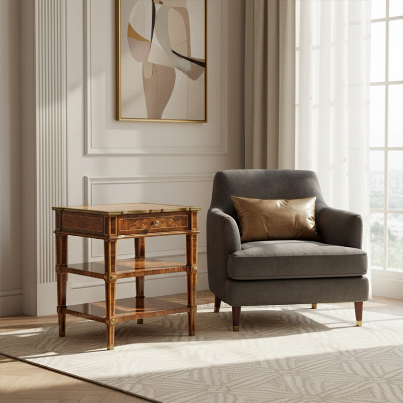 The EKAR St. James Royal Heritage End Table is a definitive expression of British classical poise, meticulously designed to serve as a sophisticated architectural anchor for the most prestigious living environments. Produced by EKAR FURNITURE, a world-renowned high-end furniture customization factory, this piece captures the lyrical grace and historical dignity of the Regency and Georgian eras. The silhouette is defined by its clean, tiered configuration and powerful verticality, offering a sense of permanent grace that anchors a formal drawing room or a grand master suite. This isn't just a functional side surface; it is a structural statement of personal success and refined taste, reflecting the superior woodworking expertise and aesthetic depth that only a top-tier Foshan furniture factory can provide to the international luxury market.