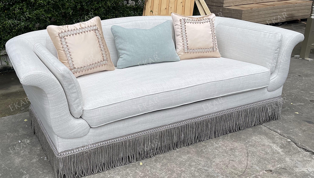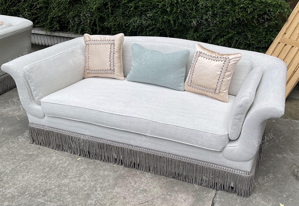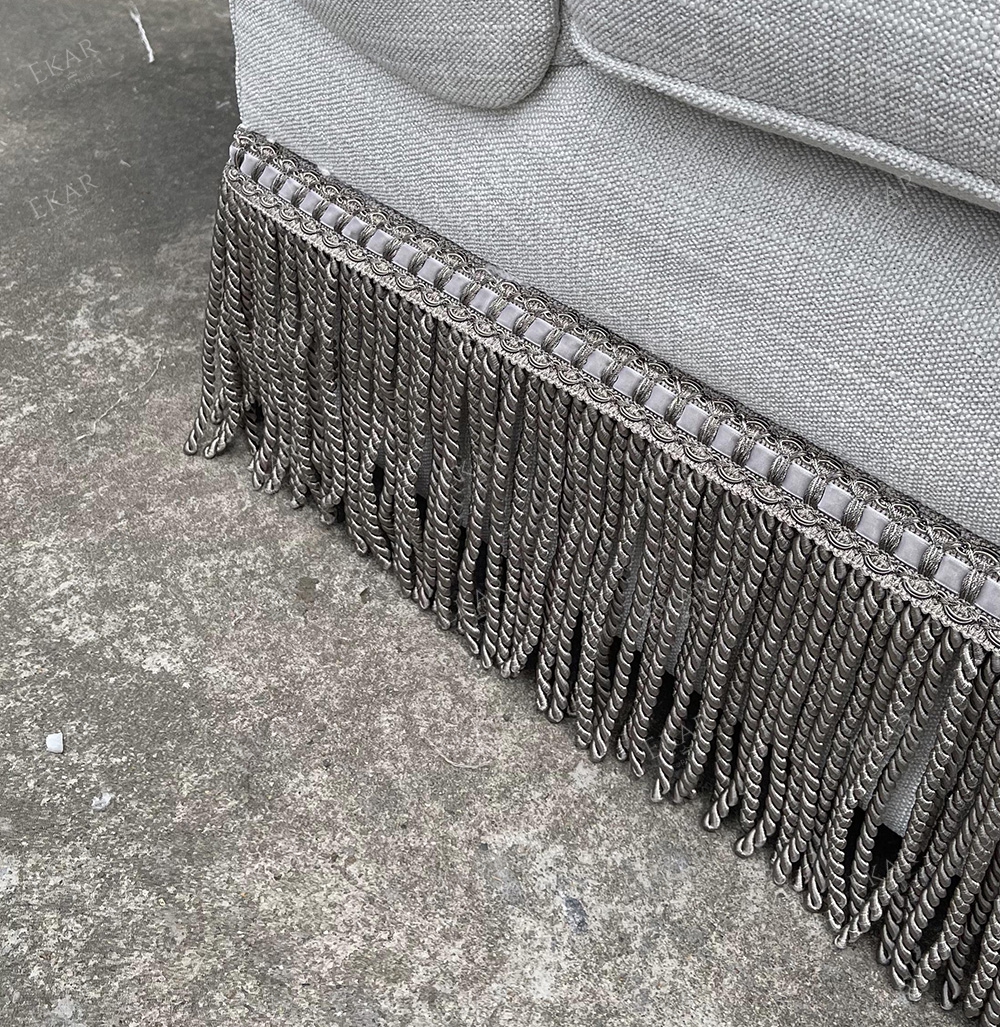 Luxury Classic Style Fabric Sofa with Fringe Detailing for Living Room